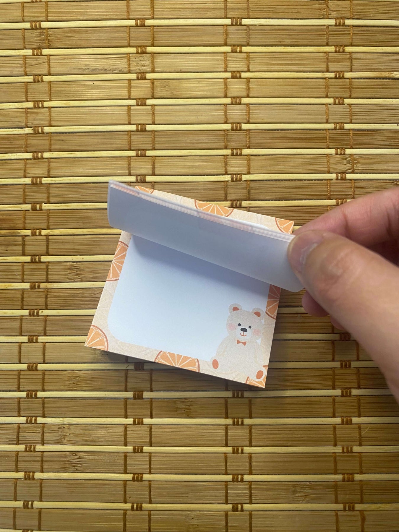 Adorable orange bear memo pad showing charming bear illustration and paper quality