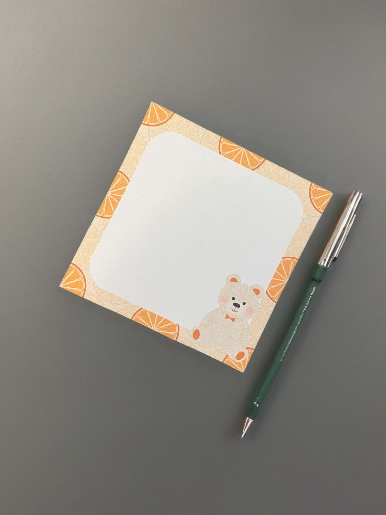 Orange bear memo pad with cute bear design - quality paper for notes and reminders